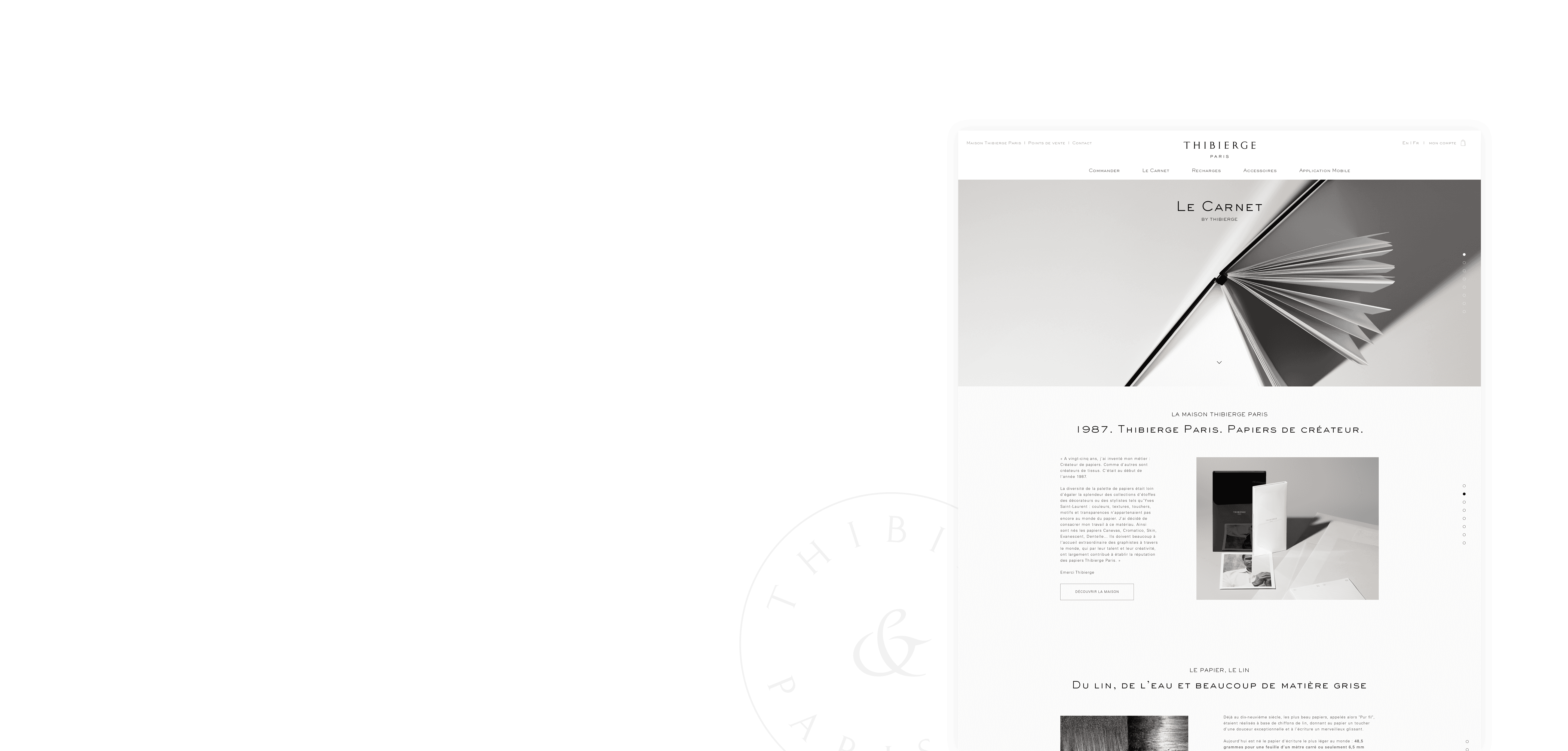 Ce site e-commerce a été conçu comme la vitrine du savoir-faire Thibierge en mettant l’accent sur son positionnement premium.