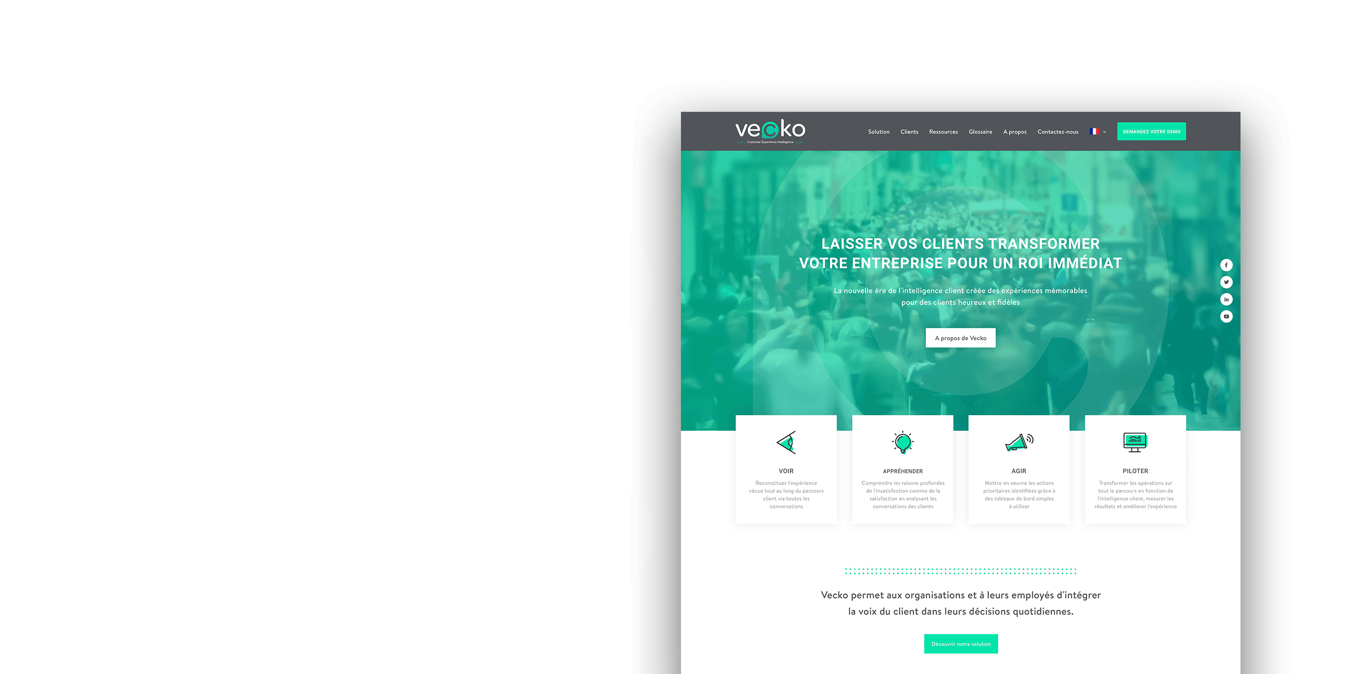 En 2018, Eptica lance “vecko by eptica”, un solution digitale qui convertit les données non structurées de la voix du client en plans d’actions permettant aux marques et aux entreprises d’améliorer en continu l’expérience sur tout le parcours client.